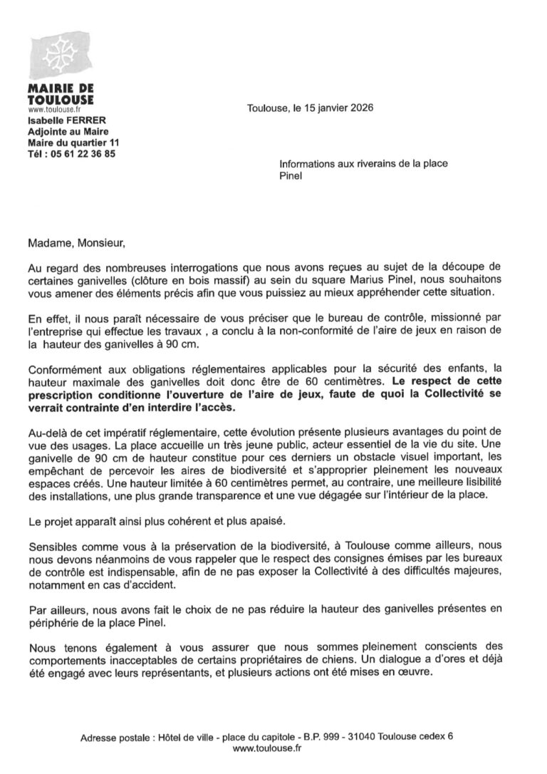 Rendre ainsi inaccessible les espaces de biodiversité du Parc Pinel sur ses pourtours : espaces adjacents à la voirie et aux abords du Cercle Laïque
